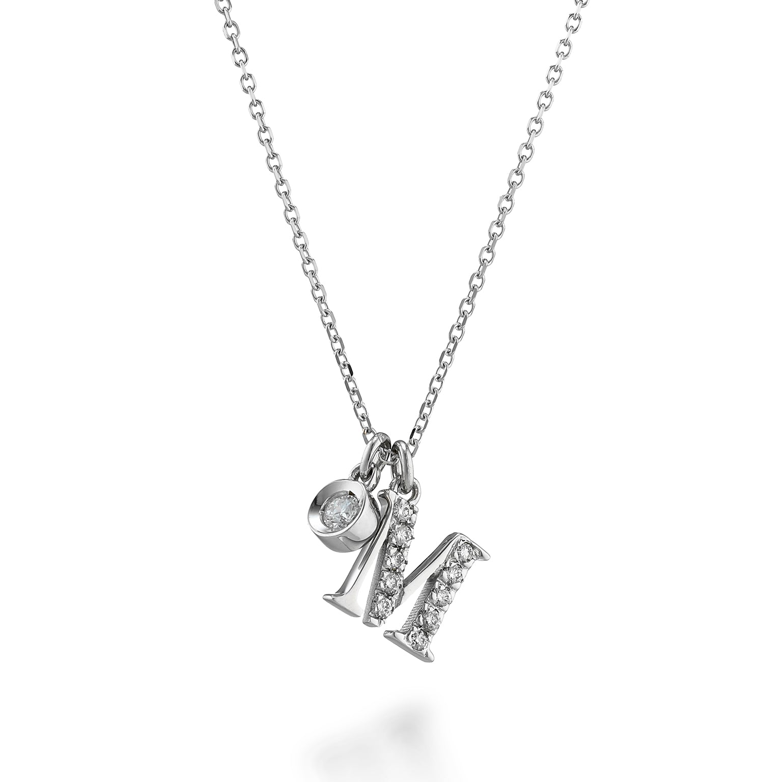 Collana in Oro 18kt Lettera M diamanti ct.0,08