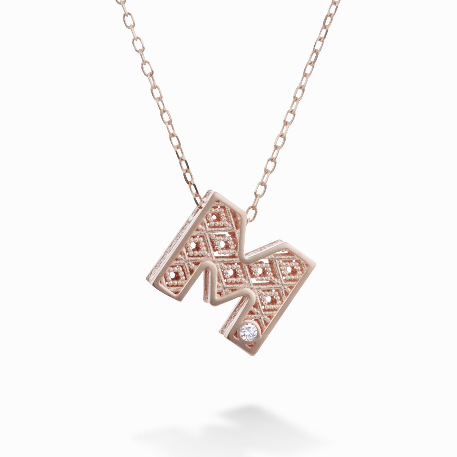 Collana in Oro 18kt LETTERA M Diamanti ct.0,01