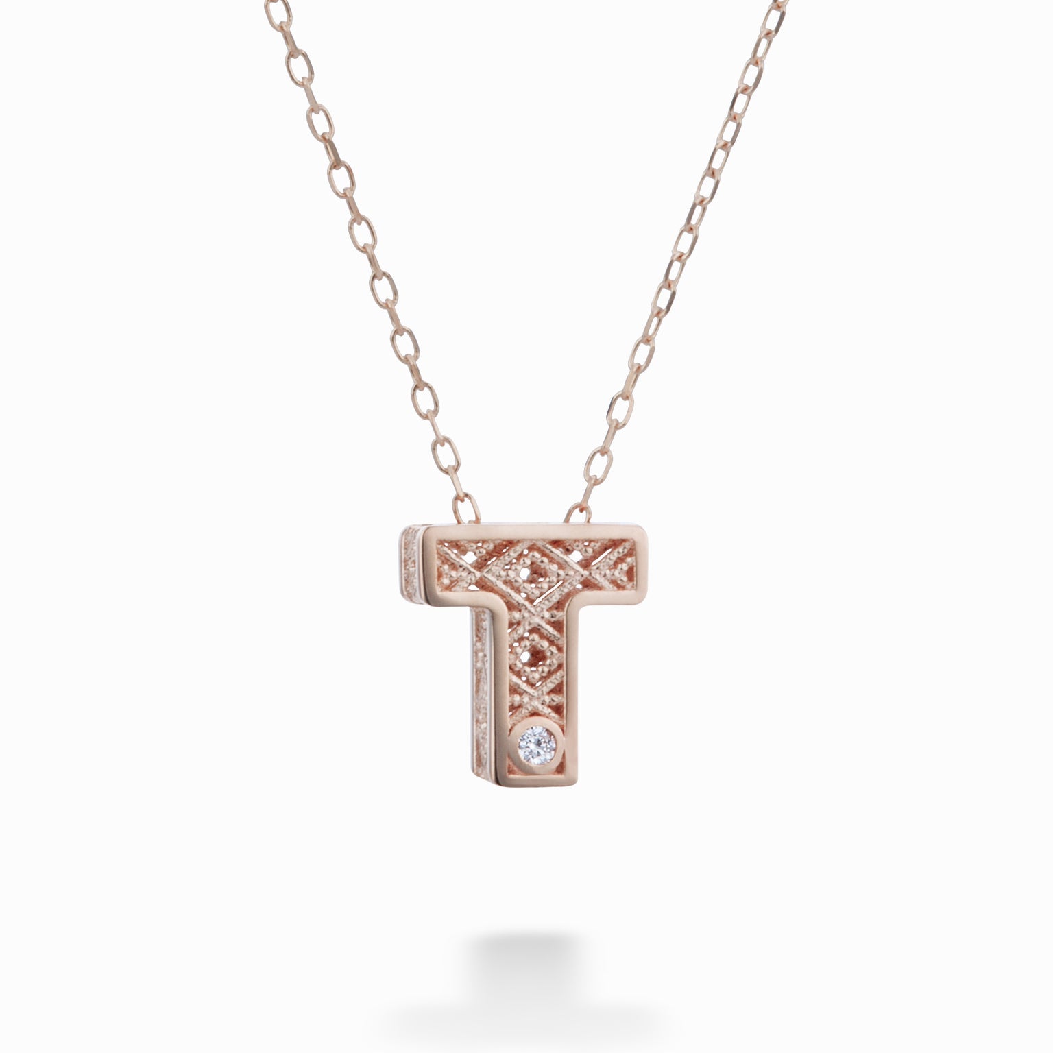 Collana in Oro 18kt LETTERA T Diamanti ct.0,01