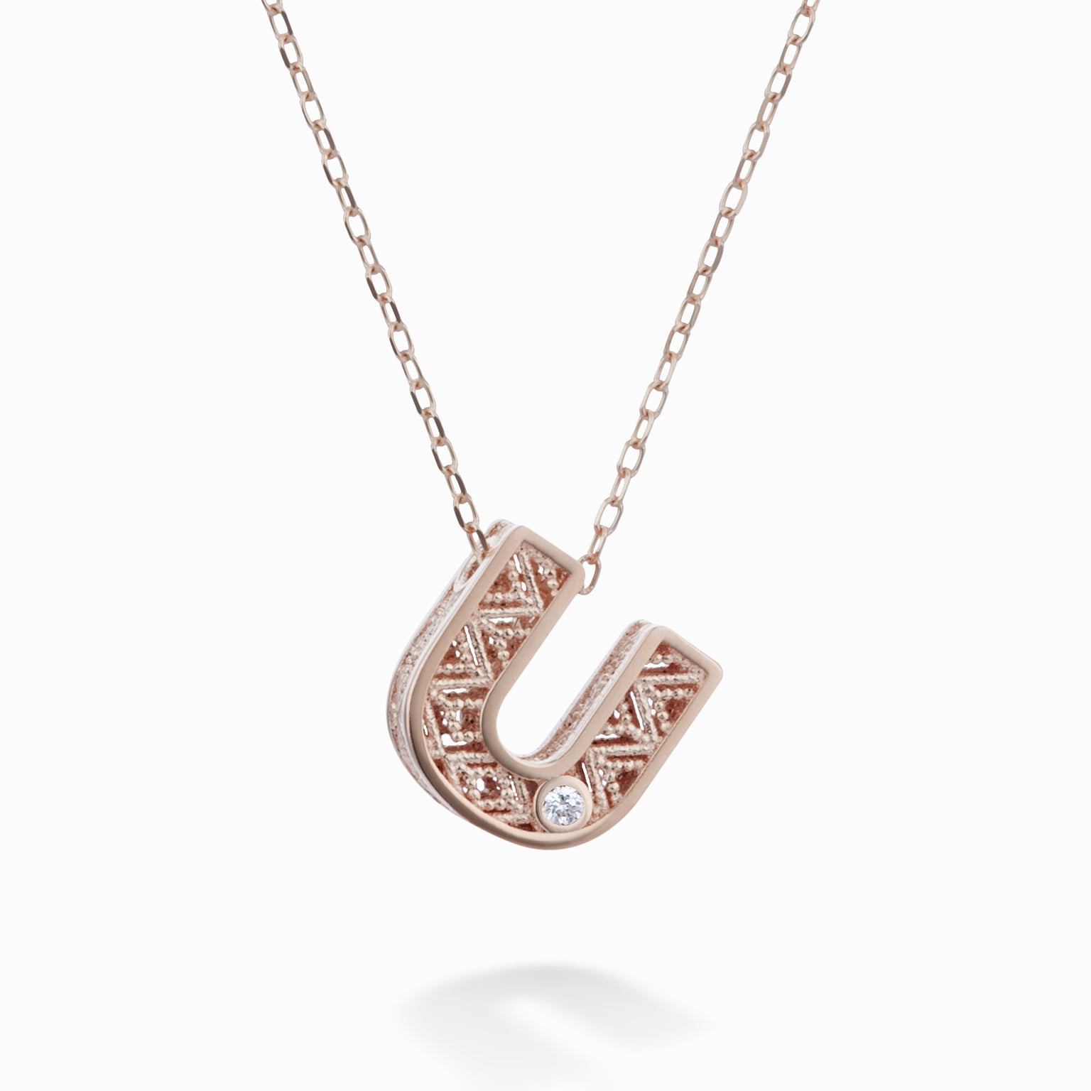 Collana in Oro 18kt LETTERA U Diamanti ct.0,01