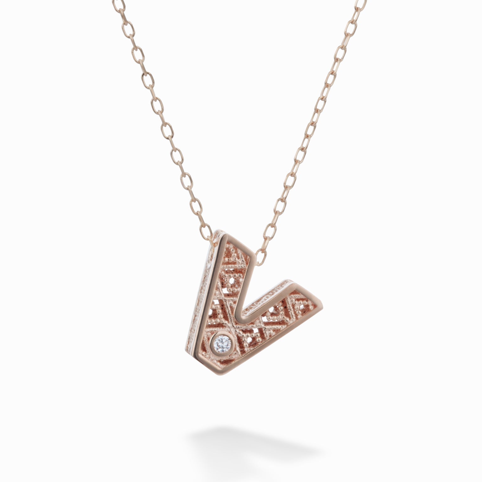 Collana in Oro 18kt LETTERA V Diamanti ct.0,01