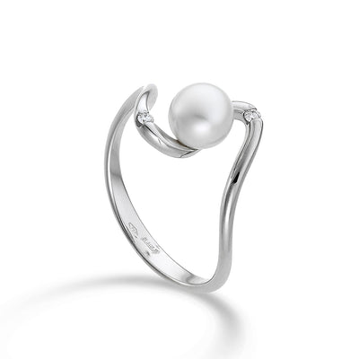 Anello in Oro 18kt e Perla Fresh water 8/8,5 con Diamanti ct.0,14