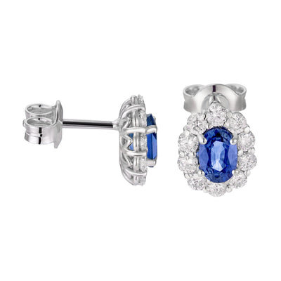 Orecchini in Oro 18kt con Diamanti Lab Grown e cuore zaffiro Lab. 5x5 ct. 1,00