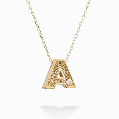 Collana in Oro 18kt LETTERA A Diamanti ct.0,01