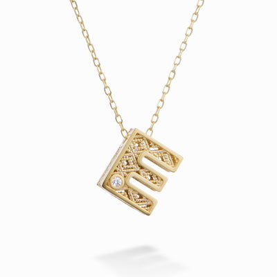 Collana in Oro 18kt LETTERA E Diamanti ct.0,01